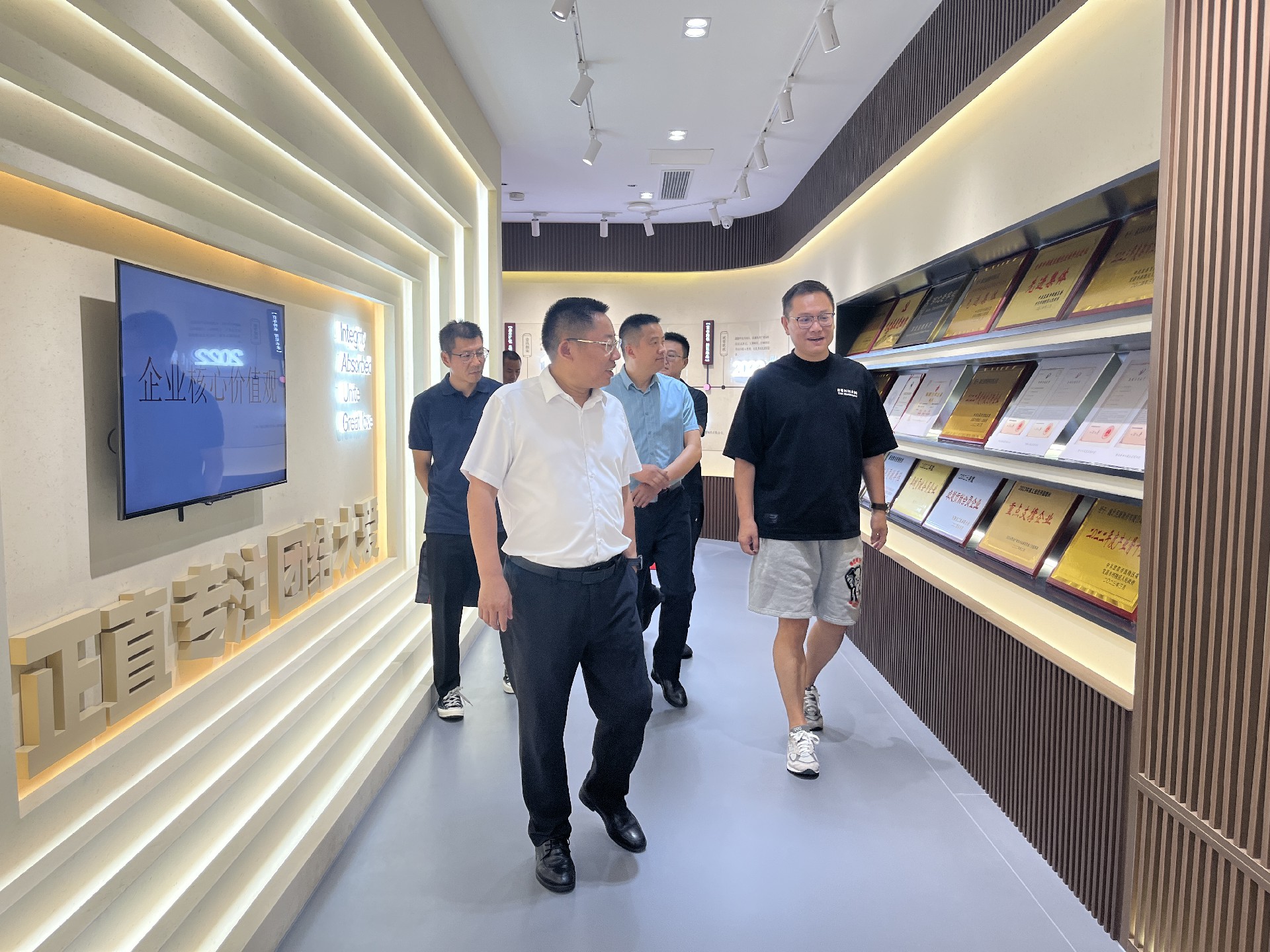 調(diào)研中,毛總陪同高局一行先是參觀了公司展廳,讓調(diào)研組對(duì)公司有了整體而深刻的印象,隨后,雙方在二樓大會(huì)議室進(jìn)行了座談,就企業(yè)關(guān)心的問(wèn)題進(jìn)行了充分地交流和深入地溝通。